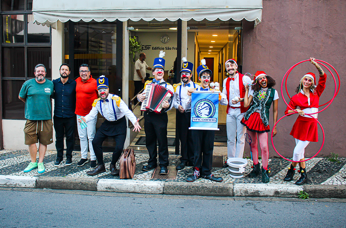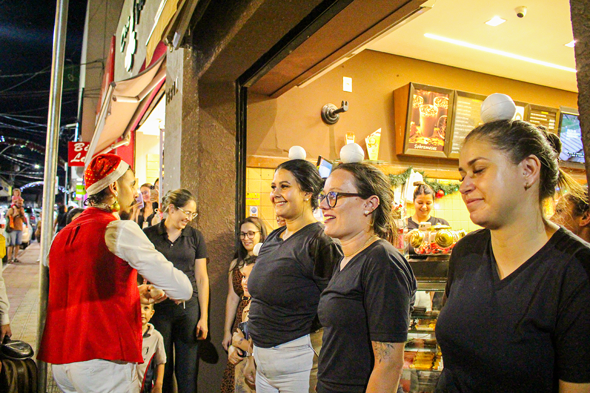 Formada por diversos integrantes, a Cia Tramp valoriza a tradição do palhaço e do circo popular, adaptando suas apresentações aos diferentes contextos em que atua. Durante a ação de Natal, o grupo percorreu as ruas do comércio central e a Praça Raul Leme, criando conexões espontâneas com lojistas, trabalhadores e clientes, reforçando o caráter festivo e cultural do evento.