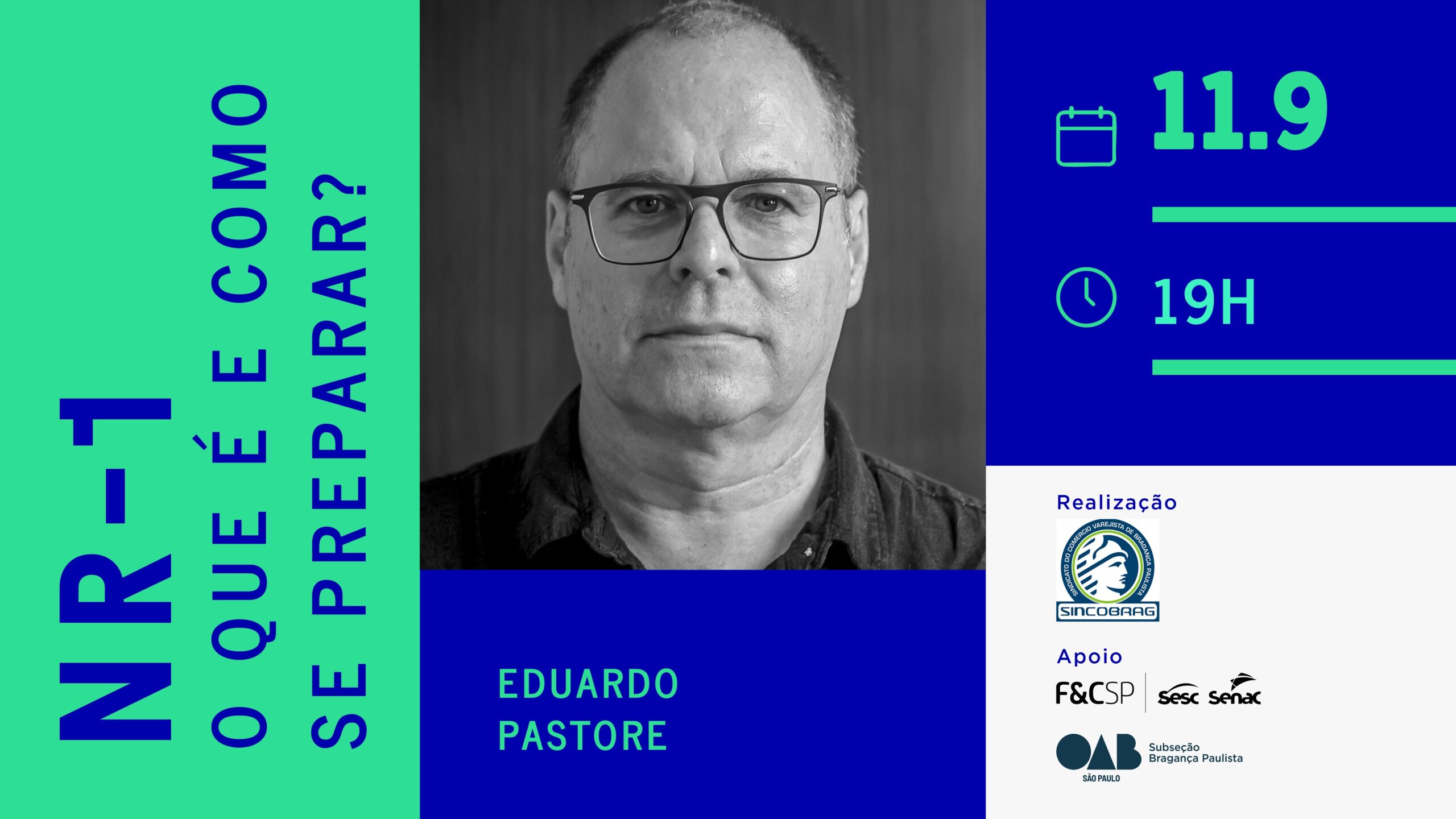 O evento contará com Eduardo Pastore, assessor jurídico da FecomercioSP, referência no assunto. Ele vai explicar, de forma prática, como as empresas podem se adequar à NR-1, considerando a realidade de cada negócio.