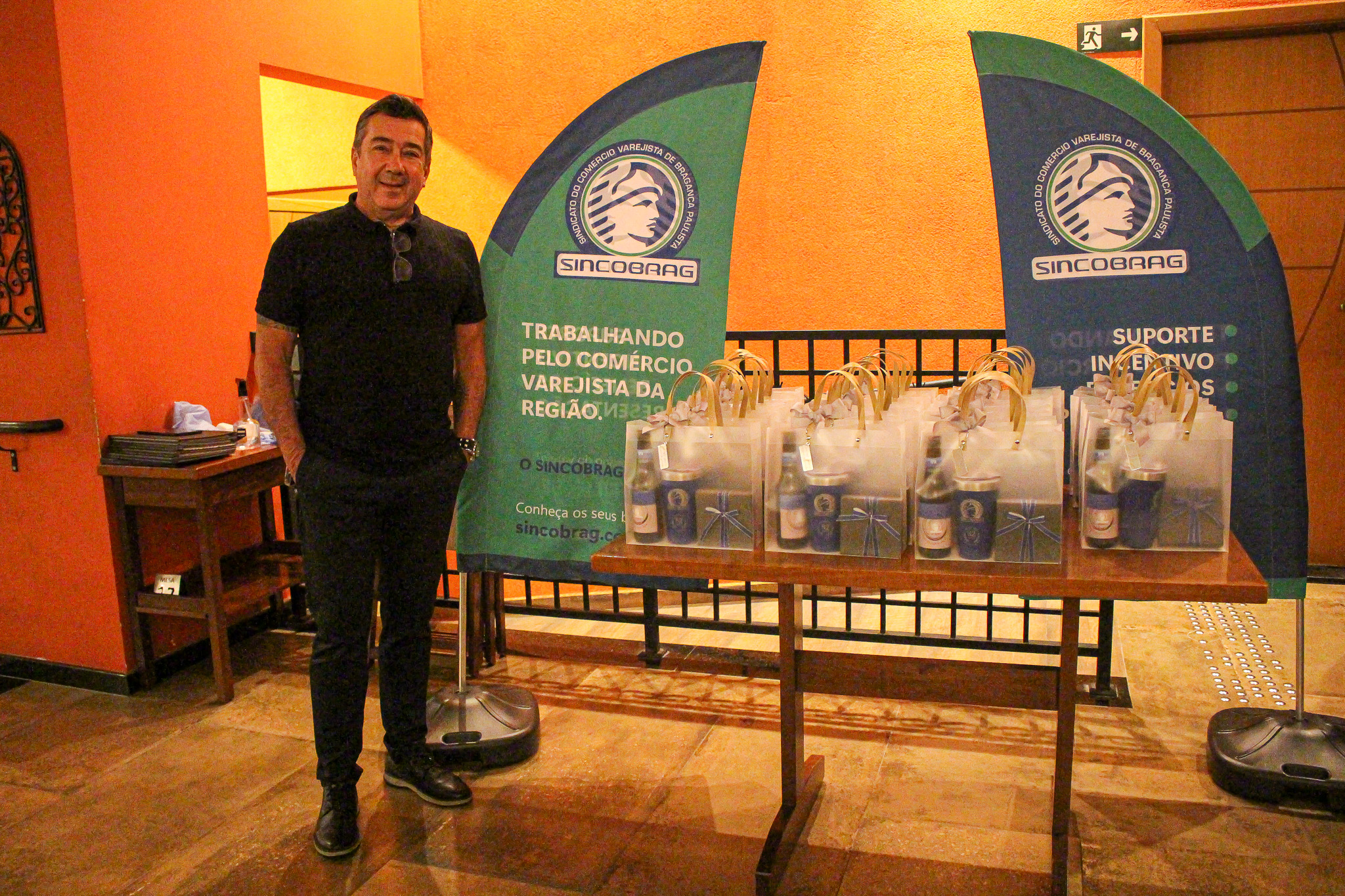 A noite de comemoração foi marcada por um clima de confraternização, com diversas opções de pizzas artesanais, vinhos selecionados e bebidas variadas, proporcionando um momento agradável entre os convidados. Para tornar a celebração ainda mais especial, os participantes receberam um kit exclusivo de presente oferecido pelo Sincobrag: um copo térmico comemorativo dos 82 anos, um difusor de aromas e uma cerveja artesanal produzida especialmente para a ocasião.